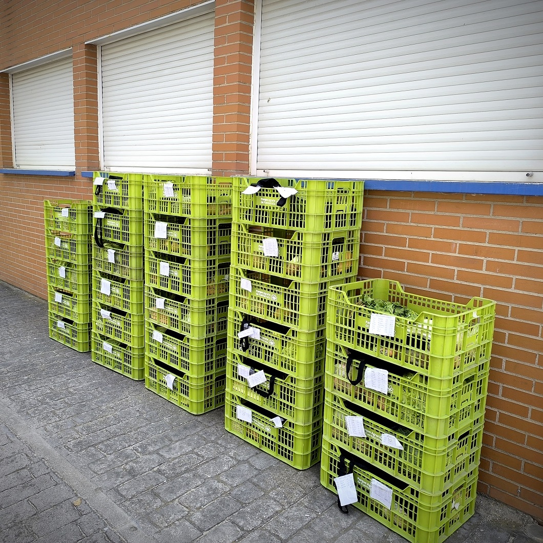 En los últimos años, estas iniciativas han aumentado mucho en su número, encontrando por ejemplo en Madrid que prácticamente todos los barrios cuentan con uno o varios grupos de consumo. A través de estas asociaciones, un grupo de personas reciben semanalmente una cesta con productos de huertas de proximidad que reciben en un punto concreto de distribución. En el caso nuestro, tenemos el privilegio de que Fuenlabrada es una ciudad con una rica agricultura periurbana gracias a los agricultores que constituyen el Parque Agrario. Además, desde hace más de una década se han desplegado diversos proyectos para potenciar la producción, distribución y consumo de proximidad de estos productos. Una pieza clave de estas iniciativas son los puestos de productos del Parque Agrario de Fuenlabrada que lideran las vendedoras Puri y Paloma desde hace más de diez años. En esta nueva etapa, son ellas las que se encargan de hacer llegar también semanalmente a los grupos de consumo de los colegios los productos bajo pedido.