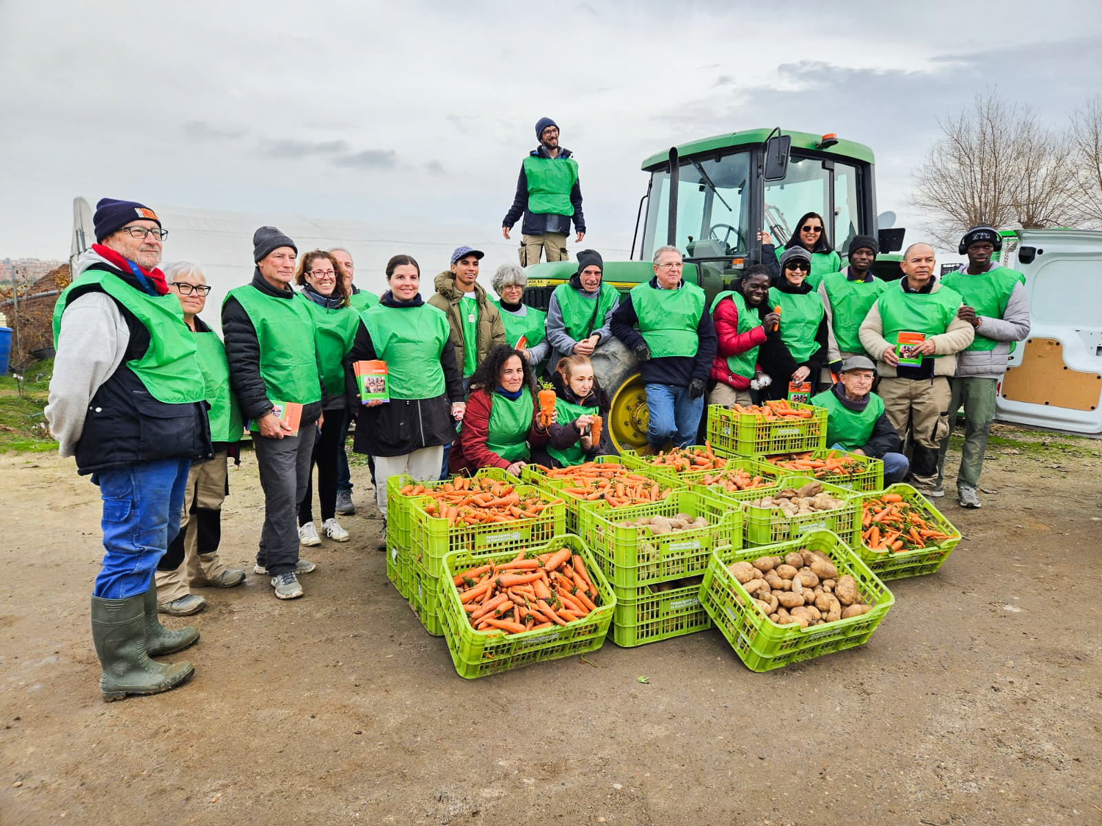 Gracias a este trabajo colectivo, se lograron recuperar 112 kg de patatas y 380 kg de zanahorias, que fueron destinadas íntegramente a la Asociación San Ricardo Pampuri de Fuenlabrada, apoyando así a personas y familias del municipio en situación de vulnerabilidad.